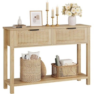 Farmhouse Entryway Table,43 Inch Wood Console Table with 2 Drawers,2 Tier Sofa Table with Storage for Living Room, Foyer, Entryway