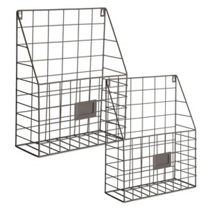 Crafted of antiqued finish “chicken coop” metal wire for a vintage look, and a sturdy frame, these baskets will stylishly house everything from magazines, file folders, books, bills, and in-coming and out-going letters. Complete your home office with these rustic looking baskets that hang on the wall to provide more storage space. Card holder insert will allow you to specify what belongs. These wall baskets aren’t just for the office but can be used and given purpose in the bathroom to for hand towels, soaps, and lotions or on a living room or kitchen wall for both décor and functional uses. Perfect in a craft room for holding supplies like scissors, tape, ribbons, or books. With their rustic appeal, these baskets make a charming housewarming gift for those who love to stay organized!