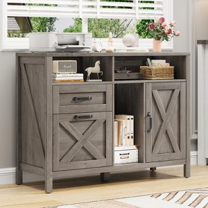 This farmhouse-style office file cabinet blends ample storage with rustic charm, featuring 2 drawers, 3 open shelves, and a large cabinet to neatly organize files. Its minimalist design adds cozy warmth to spaces, while the wide desktop accommodates printers or scanners. Reinforced with a thick-legged base and solid wood, it ensures stability and includes an anti-tip device for safety. Adjustable shelves cater to diverse needs, and assembly is straightforward with labeled parts and detailed instructions.