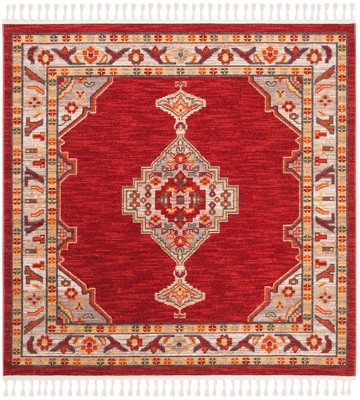 Farmhouse FMH825 Power Loomed Indoor Area Rug - Ivory/Red - 6'3"x6'3" - Safavieh