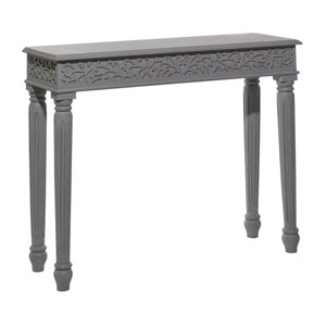 Bring a finishing touch to your home for an inviting appeal with this console table. Wood accent table are best displayed near upholstered sofa or arm chair with books and potted pot for delicate display. This item ships in 1 carton. Suitable for indoor use only. This item ships fully assembled in one piece. Maximum weight limit is 100 lbs. Made in India. This is a single gray colored entryway table. Farmhouse style.