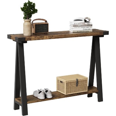 Farmhouse Narrow Entryway Table, 43.3" Console Table with Storage, 2 Tier Sofa Table with Metal Frame and MDF, Narrow Console Table for Living Room, Hallway, Entryway