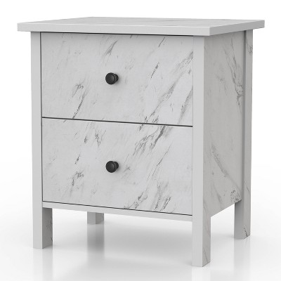 Farmhouse Nightstand Set of 2 with Charging Station - Rustic Bedside Tables with Drawers, Rustic White and Honey Brown