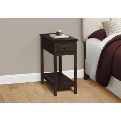 - Constructed from durable engineered wood, this versatile end table serves as a sturdy bedside table, couch side table, or guest room accent piece.
