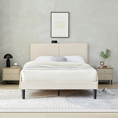 Farmhouse Nightstand with Charging Station, 2-Drawer Bedside Table, Open Shelf, USB & AC Outlets, for Bedroom & Living Room, Misty Gray