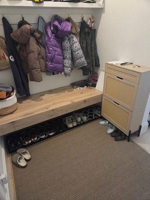 Feels solid for DIY install. Definitely can't put bigger shoes in there, but you can put 9-12 pairs in easily. Definitely took me a good hour to put together, but was quite easy. Great value for the price (got it on sale)