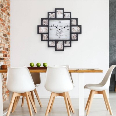 Farmhouse Shabby Chic 'This Is Us' Picture Frame Collage Wall Clock Black - American Art Decor: Memory Keeper, Round Analog Display