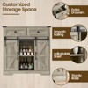 This farmhouse-style storage cabinet offers ample storage with two drawers for small items and an adjustable shelf for flexible organization, keeping bathrooms or dining rooms neat. Its sliding barn door and black angle iron blend fashion and industrial elements, adding charm to any space. Versatile for bathrooms or dining rooms, it features a solid engineered wood base and anti-tip device for stability. Easy to assemble with labeled parts, it’s a practical and stylish storage solution.