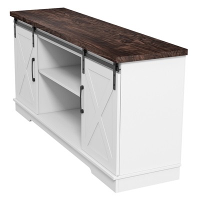 2.--Sturdy Construction: Crafted from thick engineered wood, this farmhouse TV cabinet offers exceptional durability. Metal hinges ensure smooth door operation, providing reliable functionality for everyday use