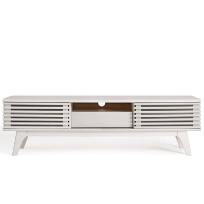 Durable and Built to Last: TV stand with storage crafted from high-grade manufactured wood, TV console tables are built to last, and decorative laminate top boards are resistant to deformation, measures 59 in L x 16 in W x 28 in H