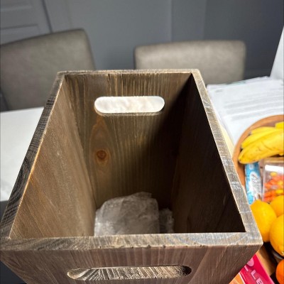 Farmlyn Creek 2 Piece Rustic Style Wood Trash Can Set, Farmhouse Square Wastebasket Bin with Handles for Home or Office Brown, Small & Large