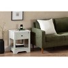 - A TRENDY END TABLE: Create an inviting setting in your living room or basement with this charming accent piece. It features a refined and cozy style with Shaker-type edges on the drawer front, decorative moldings at the bottom, and an attractive knob-style handle.