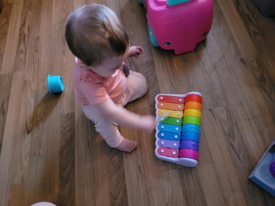 As a parent, I couldn't be happier with the toy xylophone. It's a win-win: not only does it keep my child entertained for hours, but it also introduces them to the world of music in a playful way. The vibrant colors keeps my daughter entertained. Plus, my daughter plays with the rollers that make sound while she’s doing tummy time!