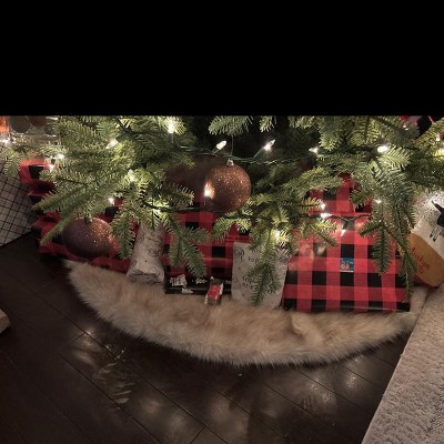 Add luxurious texture and warmth to your holiday display with this Faux-Fur Tree Skirt from Threshold™. This elegant tree skirt features soft faux fur in a sophisticated ivory shade that complements any Christmas decor style. The plush texture creates a cozy foundation for your tree while providing an attractive backdrop for wrapped gifts. Great for keeping fallen needles off your floor, the skirt features a 50-inch circular silhouette for ample floor coverage.