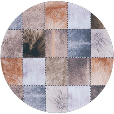 Faux Hide FAH500 Machine Washable Skid & Stain Resistant Non-Shedding Power Loomed Indoor Area Rug - Beige/Brown - 6' Round - Safavieh