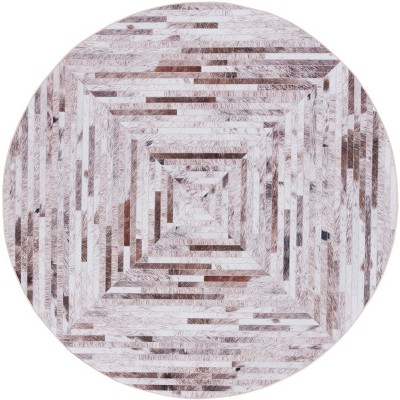 Introducing our exquisite 6' x 6' Round area rug, a perfect harmony of style and functionality crafted to elevate the elegance of any space. This stunning piece showcases a sophisticated beige and brown color palette that seamlessly blends with various interior designs, from contemporary to traditional.