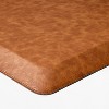Bring subtle style and comfort to your indoor space with this Faux-Leather Comfort Mat from Figmint™. This faux-leather mat is designed in a brown hue for a modern look that will coordinate easily with your home's existing decor. The stain-resistant comfort mat offers soft underfoot comfort, and the flat pile height makes it easy to clean and ideal for high-traffic areas.
