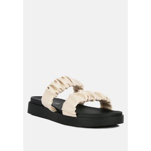 Soft and comfy - this pair of ruched strap slider sandals in the platform is a perfect leisure shoe. Comes with a padded insole and anti-slip rubber outsole. Upper Material: Synthetic Lining Material: Synthetic Outer sole: Rubber Open Toe Low Platform Sandal Padded Insole Casual Women's Everyday Sandals SH2947