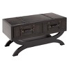 - •This traditional rectangular storage coffee table features a black with dark brown undertone and antique gold hardware