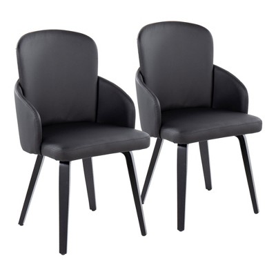 - A curvaceous dose of Mid-Century style, the unique design and silhouette of the Symphony Dining Chair will look great at any table! Also great for use as a stylish accent chair. Upholstered in a sleek faux leather accented with vertical tufting and bent wood legs, the Symphony comes in a variety of colors to fit in any room.