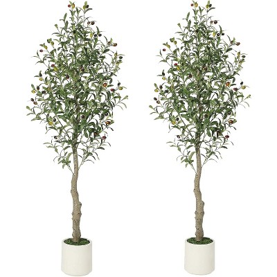 Faux Olive Tree 6Ft, Olive Trees Artificial with White Planter, Faux Plants with Lifelike Green Leaves & Vivid Fruits for Home Office Decor, Set of 2