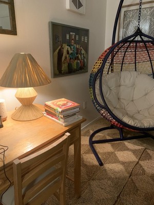 I bought 2 of these beautiful lamps during the big July Circle sale week. I’m decorating my bedroom in a tropical theme as I am from Hawaii, and these lamps are perfect. It brings the rattan/woven element to my decor. The 6 watt bulbs that come with the lamp are quite dim so I’ll change them out later. I do love how the cord matches the lamp. 10/10!