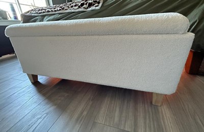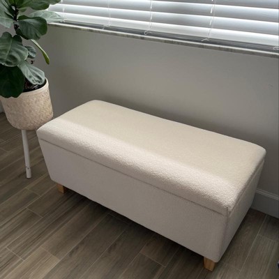 I was looking for something discreet (not too large) to fill out the space under my window. This bench is perfect! I decorated it with a pillow and throw blanket and it gave the room a whole different feel. I’ve been looking for a while now and I’m so happy I waited. Sherpa fabric is a favorite of mine so as soon as I saw it I knew I had to have it. Added bonus- i now have extra storage inside the bench as well! Highly recommend!