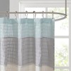 Easily transition your bathroom with this simple, yet beautifully classic shower curtain. The faux silk dupioni fabric has a natural light sheen and drapes beautifully, while also machine washable for easy care. This lightweight shower curtain features pieced and pintucking details creating a rich texture and a unique color block design, sure to freshen up any space. Pattern layout may vary due to variation of sizes. A water repellant liner is not included, and highly recommended. Complete the collection and look with coordinate bath decor, bedding, and window decor - available and sold separately.Product Details72x72"1 Shower Curtain:72x72"Material100% Polyester Polyoni