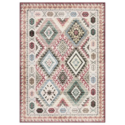 Area Rugs for Living Room Bedroom Kitchen Boho Vintage Area Rug Low Pile Non Slip Floral Carpet