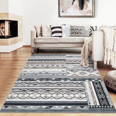 Faux Wool Modern Bohemian Printed Area Rug Low Pile Non Slip Non Shedding Pet Friendly Machine Washable Carpet Perfect for Home Decoration