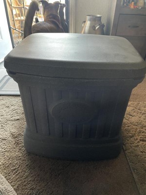[This review was collected as part of a promotion.] Wow what an amazing outdoor utility storage bin.It is very durable Perfect size It is the perfect size and it keeps every thing in it warm and dry..I will be tevommending it to all my friends and family
