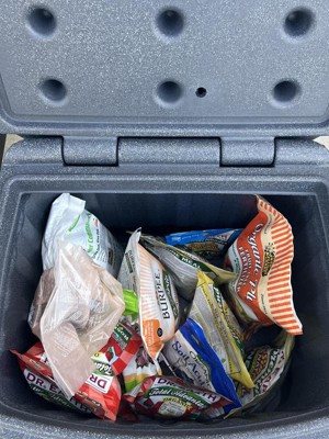 [This review was collected as part of a promotion.] The FCMP Outdoors 26 gallon storage container is just right for me. I've included a photo to give you an idea of the actual size with the objects behind it. It's called a salt container and that's what I plan to use it for. I think it is classier looking than a trash can and it won't corrode like a metal can either. I'm bigger than the average bear so I don't plan on sitting on it but a normal person could I think without a problem. The lid is double walled and has some foam inside that gives it more strength. Overall I'm happy with the construction and like the fact that it won't take up a lot of space on the porch. It has a nice solid feel about it.
