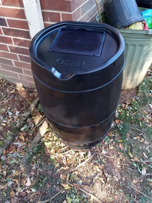 [This review was collected as part of a promotion.] The rain barrel was a perfect addition to our garden. It was easy to set up and includes everything you need. The design is pleasant to the eye but also not too bulky. It's lightweight when empty. The screen is easy to remove. The attached hose has a lever which allows you to open and close the drain hose. This can be placed under a down spout gutter or have one diverted to it. We placed ours where we have typical rain run off and it collected a fair amount of water. The only con I found was that due to its dark color you might need to shine a light into the barrel to see how much water is in it. Overall the sturdy quality composite material looks like it will last us a long time.