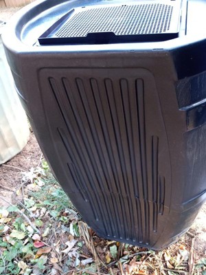 [This review was collected as part of a promotion.] I've seen quite a few ugly, bright colored, and in the way rain barrels. This rain barrel has a flat side so you can put it against a wall without a huge footprint. The black color doesn't stand out like bright blue would. The material seems durable and I expect it to last a long time. The included hose was easy to install. The water intake on top seems like the slots are a bit wide and will still allow bugs and debris in there so I plan to add some mesh over the top. It says not for use in freezing temperatures and to drain it so I'm not going to be able to use it over the winter, but come spring, it's on! Hello lower water bill! Lightweight and overall great product!