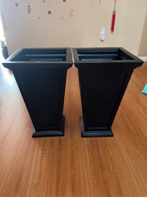 [This review was collected as part of a promotion.] My experience with the Outdoor Casablanca resin self watering planters has been awesome! Beautifully designed, durable, and very good size. They are large and stable and I love the black color I fel this design Mrs them look even more expensive. We are trying to decide to use indoor with fake palm plants or use outdoor in our backyard patio area. The self watering design is super cool and makes the maintenance of having plants much easier. I am thinking about purchasing more for our front entry as they would be perfect balance at any doorway.