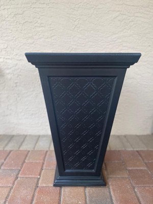 FCMP Outdoor MOD-CP3000-BLK Casablanca Resin 24" Tall Indoor/Outdoor Self-Watering Pedestal Taper Planter for Potted Plants & Flowers, Black, 2 Pack