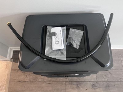 - INCLUDES: Includes debris, garden hose, shut-off thumb valve, hanging hose clip, overflow hose, and linking kit; Dimensions (D x W x H): 16 x 22 x 32 inches