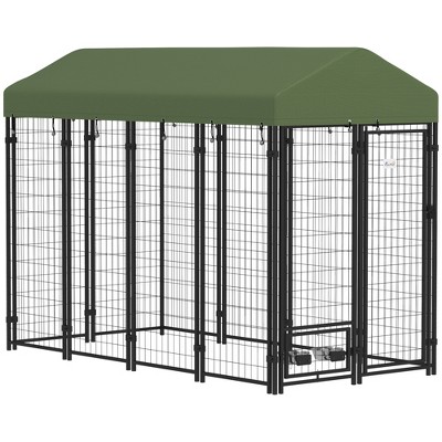 FDW Dog Crate 4 x 4 x 4.4 Ft Large Outdoor Dog Kennel Welded Wire Heavy Duty Playpen with Waterproof Canopy Secure Lock UV Resistant Roof, Black