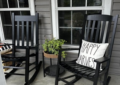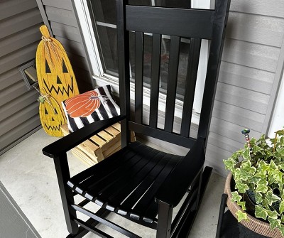 FDW Outdoor Rocking Chair Patio Rocking Chair Porch Rocking With High Back and Handrail Comfortable and Stable Durable For Porch Garden ,Black