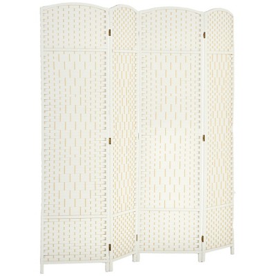 FDW Room Divider 4 Panel Folding Privacy Wooden Screen with 3 Clever Shelves Portable Partition for Home Office or Living Room, White