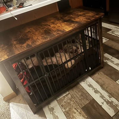 Feandrea Dog Crate Furniture, Side End Table, Modern Kennel for Dogs Indoor up to 70 lb, Heavy-Duty Dog Cage Heather Greige
