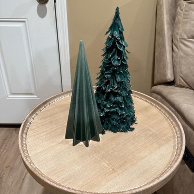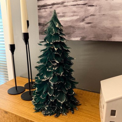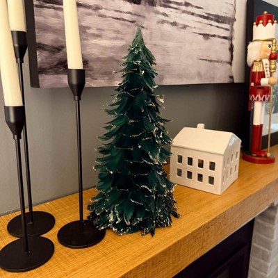 Bring feathery flair to your holiday decor with this Feather Tree from Threshold™. This Christmas tree figurine is designed in a 13.25-inch cone silhouette in bright green covered with white-tipped feathers that create a beautifully textured silhouette. Display it on the mantel, console table, or as a centerpiece on your dining table to instantly spruce up your space with wintry charm.
