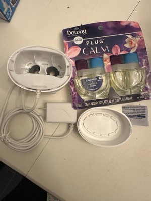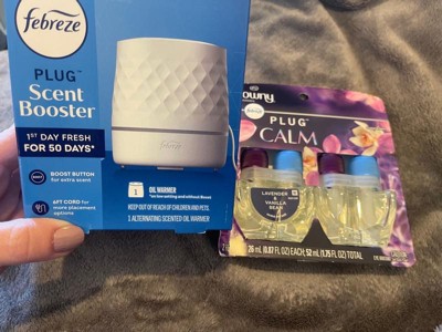 Have you experienced your plug air freshener scent fading? Good news: Febreze Fade Defy PLUG Air Freshener stays true to its name, delivering a first day fresh that lasts a full 50 days (on low setting). Ready to hit refresh and be an A+ odor fighter? Just refill the Febreze Fade Defy PLUG and plug it into any outlet (they'll even rotate if your outlet is upside down) in any high-traffic area of your home... the kitchen, bathroom, or anywhere else odors like to linger. Bonus? When it's time for a refill, the automatic air freshener will let you know with its handy low-level indicator light. And this scent refill pack comes with two Fade Defy PLUG refills so you can keep that freshness going. Wrap your senses in creamy vanilla, delicate florals, and warm sandalwood with Downy Calm. Looking for an instant burst of fresh on funky fabrics? Give Febreze Fabric Refresher a try.