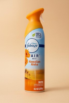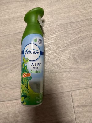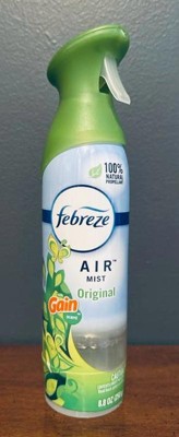 In even the cleanest homes, everyday odors are inevitable, and those odors can affect the enjoyment of being in your home. Febreze Air Mist is the go-to room deodorizer for tackling those unwanted smells. It's designed to instantly restore any space with the just-cleaned freshness you love. Made with powerful odor fighters, you can spray away stink confidently-whether you're in the kitchen, bathroom, garage, living room, or any room where bad smells happen. With rich amber, invigorating greens, and sweet florals, the freshness of Gain Original Scent is a treat to your nose... without doing a single load of laundry. And with over 40 scents to choose from, you can breathe happy for up to 6 hours of ahh-mazing scent. This air freshener has 100% natural propellant, and a nozzle that delivers full sprays to the last drop, so nothing goes to waste. Next time odors bring you down, grab the odor-fighting power and long-lasting scent of Febreze Air Mist.