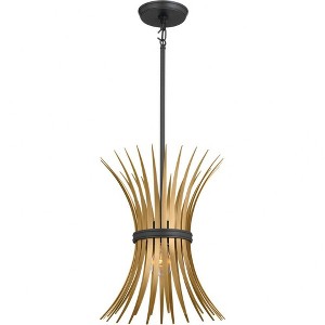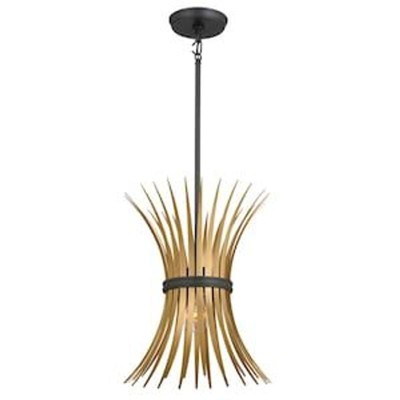 [This review was collected as part of a promotion.] I got this Baile 1 Light Mini Pendant Natural Brass and Black. I love the vintage look it gives to our kitchen. We installed it above our island and it fits with our decor perfectly. The pendant has a cool look of gathered wheat that is cinched in the middle by a black belt. It only takes one bulb and still puts off a nice amount of light. We're very happy with this light pendant and the look it adds to our kitchen.