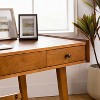 - MID-CENTURY DESIGN: Rested on 4 tapered legs, the birch veneer simply creates an alluring aesthetic with this writing desk finished in mid-century style.