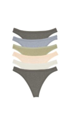 Don’t worry about panty lines any longer. Enjoy all the benefits of a thong with the added perk of organic cotton, making them incredibly soft and comfortable. Plus with 7% spandex, you’ll enjoy just the right amount of stretch. Product Details:Style: 530121P66-pack of thongsOrganic cotton w/ stretchPlant based dyesPanties lay flat under clothes for no VPLFabric Content:91% (100% Organic Cotton), 9% Spandex