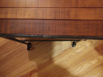 Was very excited to use this as a moving cart for some house plants. Sadly it is of poor quality. The wood and metal look nice but once assembled you can see how poor the craftmanship is. For assembly you only have to screw on 16 bolts. Very simple until one of welded screws breaks off the leg. Ok, one not bad, I'm not putting a lot of weight on it. You can't even notice. Once finished it's very obvious the top and the middle are not lined up. It looks like it was twisted a little. There is no way to adjust so they are even. Trying to roll it is difficult even with the wheels unlocked, They do not turn very well.