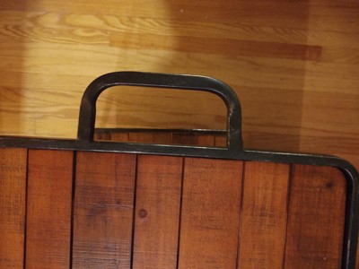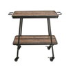 Enjoy handy storage and easy access for those essential items that need a new home. This vintage bar cart is the perfect solution for anything from cookbooks and mixing bowls to drink ware and beverages. The wooden shelves feature interlocking planks that are surrounded by industrial metal for a look that's both warm and rustic. With smooth wheels and convenient handles, you can move this cart from room to room with ease. Set up a snack bar in the kitchen and move it to your entertaining area with ease, or pull out your bake ware when you need it and tuck it away when you don't. This wood and metal bar cart is a simple solution for your storage needs.