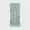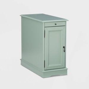 You’ll get a charge out of this cool Aqua finish end table with its flip open rear compartment housing USB and electric changing. Sturdy and sized to fit just about anywhere at 12” wide, it’s deep enough at 24” to provide ample top space for anything from a lamp to gaming controls to a book, AND a pull-out tray with coasters creates more space for drinks or a snack plate. Closed storage behind the cabinet door is split by a single shelf. Also check out the bonus storage space in the back.